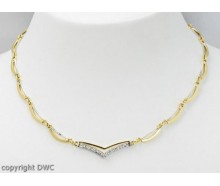 Edelmetall: 585 Gelb/WeißgoldEdelsteine: 20 Brillanten zusammen ca. 0,30 ct. Farbe: wesselton Reinheit: siGewicht: 17,58 gMaße: Länge: 42,0 cm, Breite: 2,4 - 3,4 mm, Mittelteil: 38 x 6,0 mmZustand: Gebraucht, siehe FotosZertifikat: Die Angaben spiegeln unsere persönliche Meinung wider, die wir uns nach bestem Wissen und Gewissen auf Basis langjähriger...