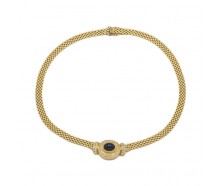 Edelmetall: 585 GelbgoldEdelsteine: 3 Safire 5 x 3,5 mm zusammen ca. 0,75 ct leuchtende Farbe 39 Brillanten zusammen ca. 0,60 ct Farbe / wesselton Reinheit / si schöne Arbeit elegantes DesignGewicht: 8,8 gMaße: Länge / 40 cm Breite / 2,3 mm Mittelteil / 31 x 23 mmZustand: gereinigt und polliertZertifikat: Die Angaben spiegeln unsere persönliche...