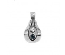 Edelmetall: 590 WeißgoldEdelsteine: Safircabochon 10,5 mm x 8,5 mm x 4,7 mm, ca. 4,5 ct. 14 Brillanten zus. ca. 0,42 ct. Farbe: Wesselton Reinheit: vsi Maße: Länge: ohne Öse: 18,7 mm, mit Öse: 22 mm, Breite: 16,2 mm, Öse innen: 6 mm x 3,5 mmGewicht: 4,65 gZustand: Gebraucht, siehe FotosZertifikat: Gutachten eines IHK Gutachters für Schmuck