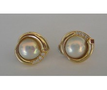 Produktart: Ohrstecker- Edelmetall: 585 Gelbgold (punziert)- Maße: ca. 9,8 x 6,9 x 7,7 mm (Länge x Breite x Höhe)- Gewicht: ca. 2,5g- Zustand: Gebraucht, siehe FotosBesatz: - 2 Perlen Ø 6,9 mm - 2 Brillanten - zusammen ca. 0,06 ct. - Farbe: wesselton - Reinheit: siLieferumfang: - Schmuck Schatulle - Schmuckzertifikat von Diamond Watch Company, auf...