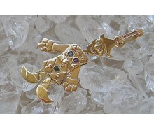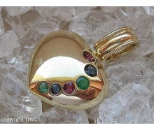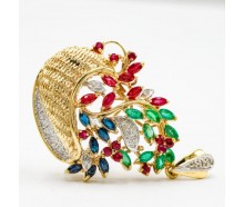 Edelmetall: 585 GelbgoldEdelsteine: 18 Rubine 7 Safire 9 Smaragde 27 Diamanten zusammen ca. 0,20 ct.Maße: Länge: ohne Öse: 31,7 mm, mit Öse: 40,0 mm, Breite: 27,5 mm, Öse innen: 6,0 mm x 3,5 mmGewicht: 7,9 gZustand: Gebraucht, siehe FotosZertifikat: Die Angaben spiegeln unsere persönliche Meinung wider, die wir uns nach bestem Wissen und Gewissen auf...