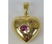 Edelmetall: 750 Gelbgold (geprüft)Edelsteine: 3 Rubine zusammen ca. 0,70 ct. 10 Brillanten zusammen ca. 0,10 ct.Maße: Länge ohne Öse: 24,0 mm, mit Öse: 3,7 mm, Breite: 27,9 mm, Öse innen: 7,5 x 4,8 mmGewicht: 7,67 gZustand: Gebraucht, siehe FotosZertifikat: Die Angaben spiegeln unsere persönliche Meinung wider, die wir uns nach bestem Wissen und...