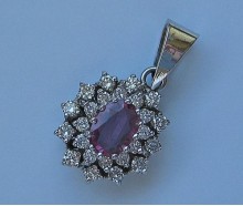 Edelmetall: 750 WeißgoldEdelsteine: 1 Rubin 6 x 5 mm 24 Brillanten ca. 0,75 ct wesselton siMaße: Länge ohne Öse: 15 mm, mit Öse: 24 mm, Breite: 13,5 mm, Öse: 6,8 x 4,2 mmGewicht: 2,7 gZustand: Gebraucht, siehe FotosZertifikat: Die Angaben spiegeln unsere persönliche Meinung wider, die wir uns nach bestem Wissen und Gewissen auf Basis langjähriger...