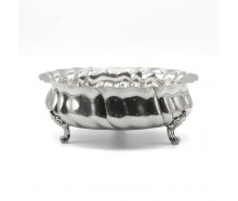 Bezeichnung: Anbietschale Silberschale auf 3 FüßenEdelmetall: 830 SilberGewicht: 258 gMaße: Höhe: 7,0 cm, Ø 18,5 cmPunzen: Halbmond & Krone, 830S, LöweHerstellung ca.: um 1960Zustand: Guter gebrauchter ZustandZertifikat: Die Echtheit des Stückes wird auf Basis unserer 25-jährigen Erfahrung im Handel nach bestem Wissen und Gewissen bestätigt. Hauptstein:...