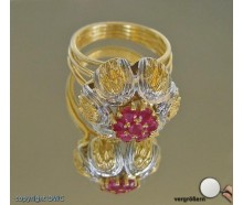 Edelmetall: 750 Gelb WeissgoldEdelsteine: 7 Rubine Schöne taubenblutrote Farbe Gewicht: 0,35 ct 6 Diamanten Gewicht: 0,06 ct. Farbe: wesselton Reinheit: vsi Schliff: Brillantschliff Gewicht: 9,9gInnendurchmesser: 17,8 mmRingänderung: ja, kann geändert werden. Zustand: Sehr gepflegter Zustand.Zertifikat: Die Angaben spiegeln unsere persönliche Meinung...
