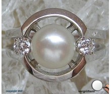 Edelmetall: 750 WeissgoldEdelsteine: 1 AKOYA-ZUCHTPERLE DURCHMESSER : 7,5 MM SEIDIGER GLANZ 2 BRILLANTEN 0,16 CT FARBE : WESSELTON REINHEIT : SI SCHLIFF: VOLLSCHLIFFGewicht: 6gInnendurchmesser: 15 mmRingänderung: ja, kann geändert werden. Zustand: Gereinigt und poliert.weitere Maße : Ringschiene: 3 mm - 6 mm ; Ringkopf: 12,8 mm x 13 ,5...