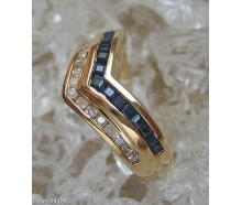 Edelmetall: 585 GelbgoldEdelsteine: 15 Brillanten Gewicht: 0,22ct Farbe: getöntes Weiss Reinheit: si - P1 Schliff: Brillantschliff 15 Safire Gewicht: 0,3ct Intensives BlauGewicht: 4,2gInnendurchmesser: 16,5 mmRingänderung: ja, kann geändert werden. Zustand: Gebraucht, siehe Fotosweitere Maße : Ringschiene: 2,4 mm - 6,7 mmZertifikat: Die Angaben...