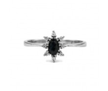 Edelmetall: 333 Weißgold (punziert)Edelsteine: 1 Safir 5,2 x 3,7 mm Gewicht ca. 0,35 ct. 8 Brillanten Gewicht zusammen ca. 0,08 ct. Farbe: wesselton Reinheit: siGewicht: 1,83 gInnendurchmesser: 17,5 mmRingänderung: ja, kann geändert werden. Zustand: Gebraucht, siehe Fotosweitere Maße : Ringkopf: 9,5 x 8,1 mm, Höhe: 5,5 mm, Ringschiene: 0,8- 1,8...