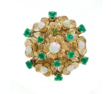 Edelmetall: 585 Gelbgold (punziert)Edelsteine: 7 Opale Ø 2,5 - 3,5 mm 12 Smaragde 2,0 - 2,6 mmGewicht: 5,8 gInnendurchmesser: 18,0 mm ØRingänderung: ja, kann geändert werden. Zustand: Gebraucht, siehe Fotosweitere Maße : Ringkopf: 22,7 mm Ø, 12,5 mm hoch, Ringschiene: 2,5 - 2,6 mmZertifikat: Die Angaben spiegeln unsere persönliche Meinung wider, die wir...