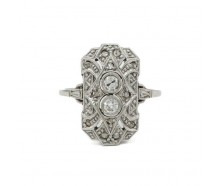Edelmetall: 585 Weißgold (punziert)Edelsteine: 2 Altschliffdiamanten zusammen ca. 0,16 ct. Farbe: wesselton Reinheit: si 12 Diamantrosen zusammen ca. 0,10 ct.Gewicht: 3,0 gInnendurchmesser: 16,0 mm Ringänderung: ja, kann geändert werden. Zustand: Gebraucht, siehe Fotosweitere Maße : Ringkopf: 18,0 x 10,7 mm, 5,3 mm hoch, Ringschiene: 1,1 - 3,6...