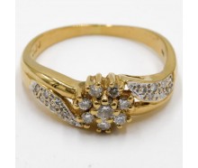 Edelmetall: 585 GelbgoldEdelsteine: 22 Brillanten zusammen 0,33 ct. (punziert) Farbe: wesselton Reinheit: siGewicht: 2,6 gInnendurchmesser: 17,5 mm ØRingänderung: ja, kann geändert werden. Zustand: Gebraucht, siehe Fotosweitere Maße : Ringkopf: 7,4 mm Ø, Ringschiene: 1,6 - 5,5 mmZertifikat: Die Angaben spiegeln unsere persönliche Meinung wider, die wir...