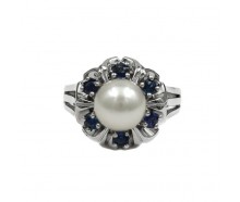 Edelmetall: 585 Weißgold (punziert)Edelsteine: 1 Perle Ø 8,2 mm 6 Safire Ø 2,6 mmGewicht: 6,3 gInnendurchmesser: 17,2 mmRingänderung: ja, kann geändert werden. Zustand: Gebraucht, siehe Fotosweitere Maße : Ringkopf: 14,8 mm Ø, 12,5 mm hoch, Ringschiene: 2,0 - 7,1 mmZertifikat: Die Angaben spiegeln unsere persönliche Meinung wider, die wir uns nach...
