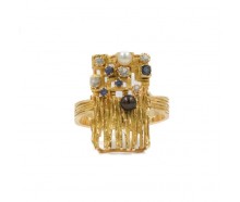 Edelmetall: 750 Gelbgold (punziert)Edelsteine: Weiße Perle ca. 4 mm Ø Schwarze Perle ca. 4,3 mm Ø 4 blaue Safire ca. 2,1 - 2,5 mm Ø 5 weiße Safire ca. 2,0 - 2,8 mm ØGewicht: 12,2 gInnendurchmesser: 23 mmRingänderung: ja, kann geändert werden. Zustand: Gebraucht, siehe Fotosweitere Maße : Ringkopf: 26,7 mm x 16,0 mm, 7,0 mm hoch, Ringschiene: 3,7 - 5,6...