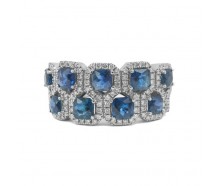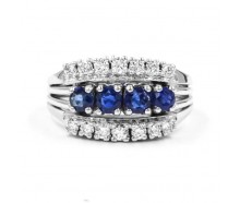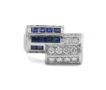 Edelmetall: 750 Weißgold (gepunzt)Edelsteine: 19 natürliche Saphire Gewicht zusammen 0,85 ct. 40 natürliche Brillanten Gewicht zusammen 1,7 ct. Farbe: feines Weiß Reinheit: vsGewicht: 9,0 gInnendurchmesser: 17,5 mmRingänderung: ja, kann geändert werden. Zustand: Gebraucht, siehe Fotosweitere Maße : Ringschiene: 4,3 - 9,7 mmZertifikat: Gutachten eines...