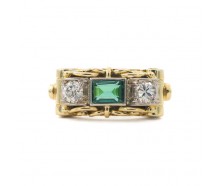 Edelmetall: 585 Gelbgold (punziert)Edelsteine: 1 Turmalin Gewicht ca. 0,37 ct. 2 Brillanten Gewicht zusammen ca. 0,40 ct. Farbe: wesselton Reinheit: si Gewicht: 5,5 gInnendurchmesser: 16,5 mmRingänderung: ja, kann geändert werden. Zustand: Gebraucht, siehe Fotosweitere Maße : Ringkopf : 18,0 x 8,5 mm, 4,8 mm hoch, Ringschiene : 2,6 - 3,1 mmZertifikat:...
