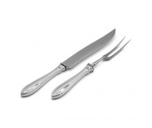 Bezeichnung: Tranchierbesteck 2 tlg. Messer & Gabel in 800 Silber antik mit EdelstahlklingeEdelmetall: Griffe in 800 SilberGewicht: 393 gMaße: Länge Messer: 32,5 cm, Gabel: 28,5 cmPunzen: 800, auf der Klinge: EICHENLAUB, SOLINGEN, ROSTFREIHerstellung ca.: Griffe um 1900, Forderteile erneuertZustand: sehr guter Zustand, MonogrammZertifikat: Die Echtheit...