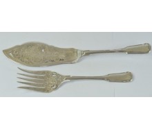 Bezeichnung: 1 Paar Fischvorleger Augsburger FadenEdelmetall: Silber (geprüft)Gewicht: 333 gMaße: Länge Messer: 32 cm, Gabel: 24 cmPunzen: Burg mit "E", FHerstellung ca.: um 1900Zustand: guter, gebrauchter ZustandZertifikat: Die Echtheit des Stückes wird auf Basis unserer 25-jährigen Erfahrung im Handel nach bestem Wissen und Gewissen bestätigt.