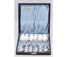Bezeichnung: Fischbesteck 26 tlg.Edelmetall: 800 SilberGewicht: 1388 gMaße: 12 Fischmesser Länge: 21 cm. 12 Fischgabeln Länge: 18 cm, 2 Vorleger Länge 30 cm und 22,5 cmPunzen: 800, Halbmond und Krone, LSFHerstellung ca.: 1970Zustand: gereinigter, guter Zustand mit leichten GebrauchspurenZertifikat: Die Echtheit des Stückes wird auf Basis unserer...