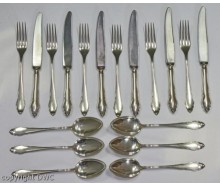 Bezeichnung: 41 tlg.BesteckEdelmetall: 800 SilberGewicht: 1804 gMaße: 6 Messer: 21,5 cm 6 Gabeln: 19,5 cm 6 Löffel: 19,5 cm 4 Kaffeelöffel: 14,5 cm 4 Kuchengabeln: 14,5 cm 8 Moccalöffel 11 cm 1 Kuchenheber: 24 cm 2 Vorlegelöffel 21 cm 25 cm 1 Soßenkelle 18 cm 2 Vorlegegabeln:L 20 cmPunzen: Halbmond mit Krone , 800 , G RHerstellung...