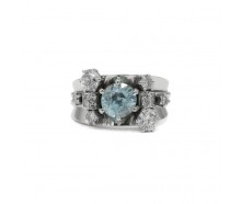 Edelmetall: 585 Weißgold (punziert)Edelsteine: 1 Blautopas Ø 8,0 mm, ca. 2,0 ct. 2 Kristalle Ø ca. 5,0 mm, ca. 1,0 ct. 12 Diamanten zusammen ca. 0,38 ct. Farbe: wesselton Reinheit: si Gewicht: 9,65 gInnendurchmesser: 18,0 mmRingänderung: ja, kann geändert werden. Zustand: Gebraucht, siehe Fotosweitere Maße : Ringkopf: 18,0 x 14,0 mm, Höhe: 7,0 mm,...