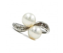 Edelmetall: 750 Weißgold (punziert)Edelsteine: 2 Zuchtperlen ca. 7,2 mm Ø 4 Diamanten ca. 0,04 ct Farbe: wesselton Reinheit: SiGewicht: 3,35 gInnendurchmesser: 17,2 mmRingänderung: ja, kann geändert werden. Zustand: Gebraucht, siehe Fotosweitere Maße : Ringkopf: 14,4 mm x 7,2 mm, 8,4 mm hoch, Ringschiene: 1,3 - 3,3 mmZertifikat: Die Angaben spiegeln...