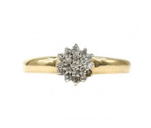 Edelmetall: 585 GelbgoldEdelsteine: 22 Brillanten zusammen 0,33 ct. (punziert) Farbe: wesselton Reinheit: siGewicht: 2,6 gInnendurchmesser: 17,5 mm ØRingänderung: ja, kann geändert werden. Zustand: Gebraucht, siehe Fotosweitere Maße : Ringkopf: 7,4 mm Ø, Ringschiene: 1,6 - 5,5 mmZertifikat: Die Angaben spiegeln unsere persönliche Meinung wider, die wir...