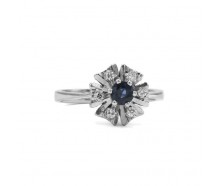 Edelmetall: 750 Weißgold (punziert)Edelsteine: 1 Safir Gewicht ca. 0,30 ct. 6 Diamanten Gewicht zusammen ca. 0,08 ct. Farbe: wesselton Reinheit: siGewicht: 3,65Innendurchmesser: 16,5 mmRingänderung: ja, kann geändert werden. Zustand: Gebraucht, siehe Fotosweitere Maße : Ringkopf: Ø 10,7 mm, Höhe: 9,1 mm, Ringschiene: 1,0 - 2,7 mmZertifikat: Die Angaben...