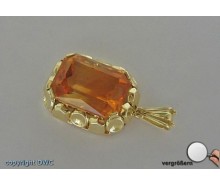 Edelmetall: 750 Gelbgold (geprüft)Edelsteine: Citrin 22,5 x 18,5 mmMaße: Länge ohne Öse: 22,9 mm, mit Öse: 33,2 mm, Breite: 19,7 mm, Öse innen: 7,5 x 2,2 mmGewicht: 11,6 gZustand: Gebraucht, siehe FotosZertifikat: Die Angaben spiegeln unsere persönliche Meinung wider, die wir uns nach bestem Wissen und Gewissen auf Basis langjähriger Erfahrung gebildet...