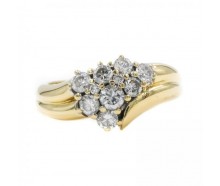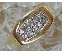 Edelmetall: 585 Gelb/weißgold (punziert)Edelsteine: 10 Brillanten zusammen 0,65 ct. (punziert) Farbe: wesselton Reinheit: vsiGewicht: 4,5 gInnendurchmesser: 16,5 mm ØRingänderung: ja, kann geändert werden. Zustand: Gebraucht, siehe Fotosweitere Maße : Ringkopf: 12,0 x 9,7 mm, 4,6 mm hoch, Ringschiene: 3,2 - 8,0 mmZertifikat: Die Angaben spiegeln unsere...