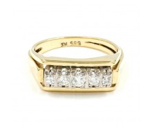 Edelmetall: 585 Gelbgold (punziert)Edelsteine: 7 Brillanten zusammen 0,45 ct. (punziert) Farbe: wesselton Reinheit: if-vsiGewicht: 4,4 gInnendurchmesser: 19,4 mmRingänderung: ja, kann geändert werden. Zustand: Gebraucht, siehe Fotosweitere Maße : Ringschiene: 3,3 - 3,5 mmZertifikat: Die Angaben spiegeln unsere persönliche Meinung wider, die wir uns...
