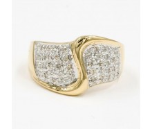 Edelmetall: 585 Gelb/weißgold (punziert)Edelsteine: 25 Brillanten zusammen ca. 0,50 ct. Farbe: wesselton Reinheit: si-vsGewicht: 4,2 gInnendurchmesser: 16,8 mm ØRingänderung: ja, kann geändert werden. Zustand: Gebraucht, siehe Fotosweitere Maße : Ringkopf: 9,1 x 9,1 mm, 5,4 mm hoch, Ringschiene: 3,0 - 8,0 mmZertifikat: Die Angaben spiegeln unsere...