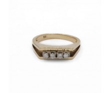 Edelmetall: 585 GelbgoldEdelsteine: 3 Brillanten Gewicht: 0,25ct Farbe: wesselton (H) Reinheit: si Schliff: Brillantschliff Gewicht: 3,2gInnendurchmesser: 16,5 mmRingänderung: ja, kann geändert werden. Zustand: Gereinigter sehr guter Zustand.weitere Maße : Ringkopf: 12 mm x 9 mm ; 5 mm hochZertifikat: Die Angaben spiegeln unsere persönliche Meinung...