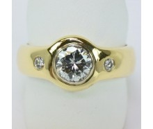 Edelmetall: 750 GelbgoldEdelsteine: 1 Brillant 1,39 ct. Farbe: H / weiß Reinheit: Pique 1 2 Brillanten zusammen ca. 0,14 ct. mittlerer Farb- und ReinheitsgradGewicht: 13,01 gInnendurchmesser: 19,8 mm ØRingänderung: ja, kann geändert werden. Zustand: Gebraucht, siehe Fotosweitere Maße : Ringkopf: 11,1 mm, Durchmesser 4,1 mm hoch, Ringschiene: 5,4 mm -...