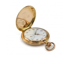 Edelmetall: 585er Gelbgold alle 3 Deckel GoldBesonderheit: Schwanenhals Feinregelage, Kron- und Sperrad mit Glashütter SonnenschliffWerksinfos: Handaufzug Ankerhemmung Besonderheit: Zum Stellen der Uhrzeit den Stellhebel nach oben drücken, durch Schließen des Deckels springt der Hebel wieder in die Aufzugsposition zurück! Funktionen: Kleine Sekunde,...
