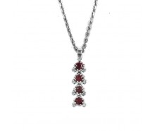 Edelmetall: 585 Weißgold (punziert)Edelsteine: 4 Rubine 3,3 mm Ø zusammen ca. 0,50 ct. 8 Diamanten zusammen ca. 0,04 ct. Farbe: wesselton Reinheit: siGewicht: Zusammen: 6,1 gMaße: Kette Länge: 40 cm, Breite: 1,4 mm, Anhänger: Länge ohne Öse: 21 mm, mit Öse: 25 mm, Breite: 6,6 mmZustand: Gebraucht, siehe FotosZertifikat: Die Angaben spiegeln unsere...