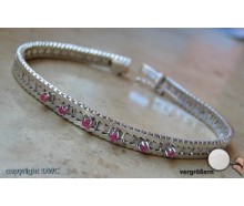 Edelmetall: 750 WeißgoldEdelsteine: 11 Brillanten zusammen ca. ca. 0,54 ct. Farbe: schwach gelb Reinheit: si 24 Rubine zusammen ca. 0,70 ct Gewicht: 28 gMaße: Länge: 18 cm Breite: 6 - 15 mmZustand: Gebraucht, siehe FotosZertifikat: Die Angaben spiegeln unsere persönliche Meinung wider, die wir uns nach bestem Wissen und Gewissen auf Basis langjähriger...