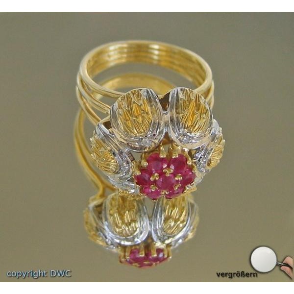 Ring in aus 750 er 18 Kt Gold mit Rubin Brillant Diamant Rubine Grösse 56