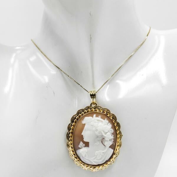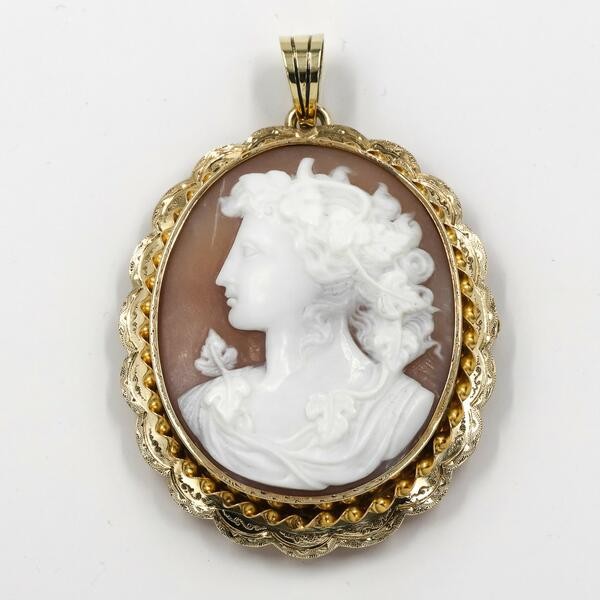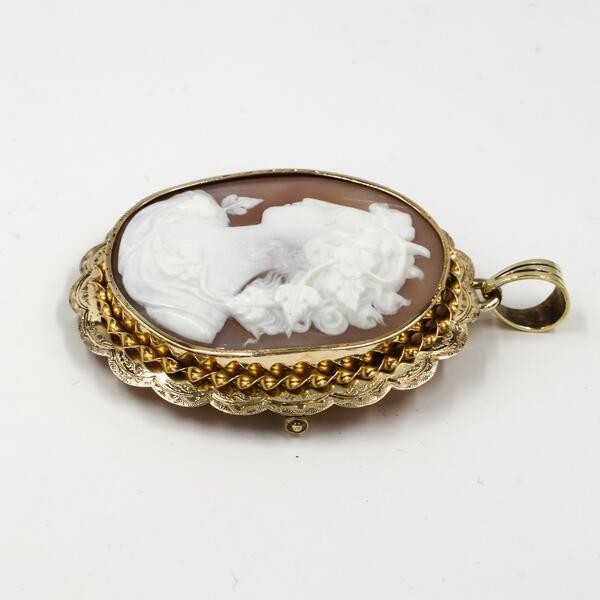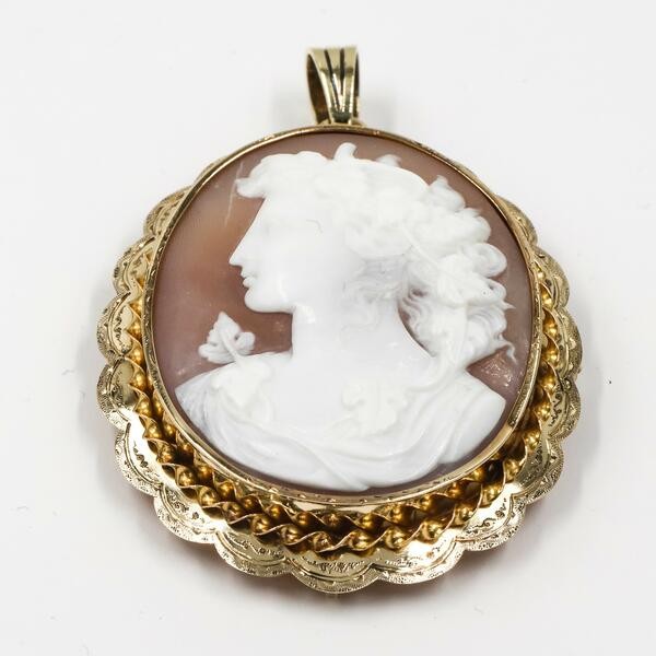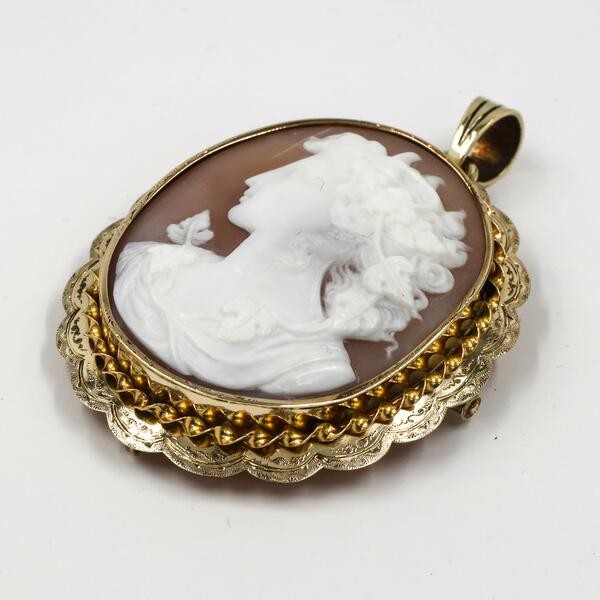 Anhänger Brosche mit Kamee Muschelgemme in 14 Kt 585 er Gold antik Top!
