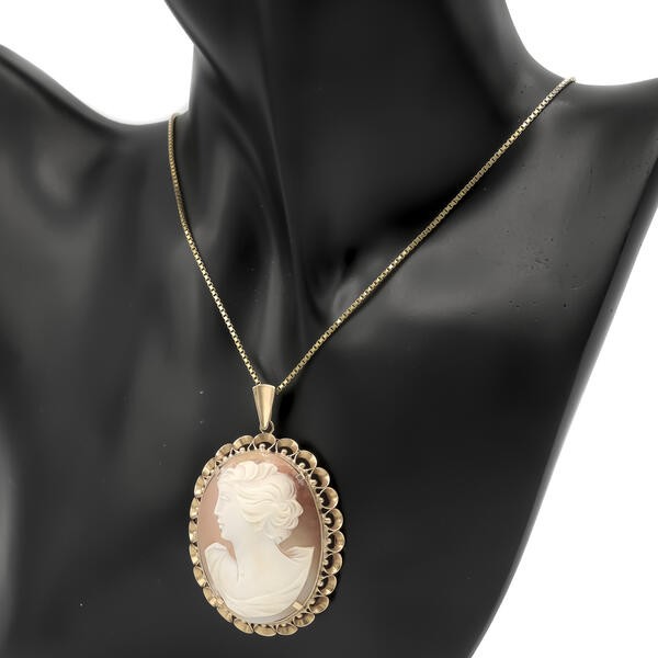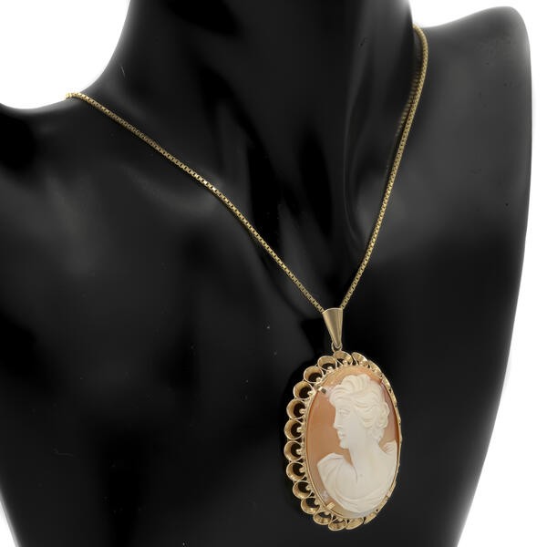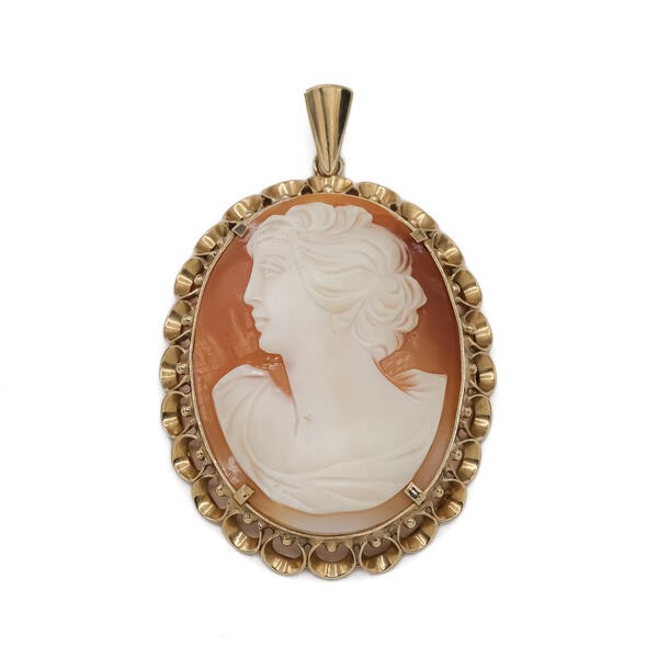 Anhänger mit Muschelgemme Dame Kamee in 14 Kt. 585 Gold