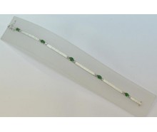 Edelmetall: 750 WeißgoldEdelsteine: 5 Smaragde 5 x 3,5 mm 10 Brillanten zusammen ca. 0,30 ct. Farbe: wesselton Reinheit: siGewicht: 16,6 gMaße: Länge: 18,2 cm, Breite: 3,9 cmZustand: Gebraucht, siehe FotosZertifikat: Die Angaben spiegeln unsere persönliche Meinung wider, die wir uns nach bestem Wissen und Gewissen auf Basis langjähriger Erfahrung...
