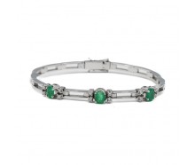 Edelmetall: 585 Weißgold (punziert)Edelsteine: 3 Smaragde Gewicht zusammen ca. 0,80 ct. 12 Brillanten Gewicht zusammen ca. 0,24 ct. Farbe: wesselton Reinheit: siGewicht: 14,1 gMaße: Länge: 18,0 cm, Breite: 3,4 - 5,9 mmZustand: Gebraucht, siehe FotosZertifikat: Die Angaben spiegeln unsere persönliche Meinung wider, die wir uns nach bestem Wissen und...