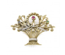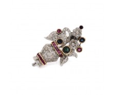 Edelmetall: 750 Weiß/Gelbgold (Säure geprüft)Edelsteine: 67 Brillanten, zusdammen ca. 0,50 - 0,60 ct. Farbe: wesselton, Reinheit: si 11 Rubinkarrees zusammen ca. 0,30 ct. 3 Rubine, 2 Safire, 1 Smaragd, zusammen ca. 0,50 ct.Gewicht: 10,48 gMaße: Länge: 41,0 mm, Breite: 24,5 mmZustand: Gebraucht, siehe FotosZertifikat: Gutachten eines IHK Gutachters für...