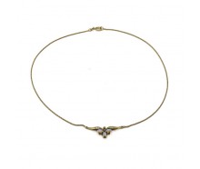 Edelmetall: 585 GelbgoldEdelsteine: 3 Safire 5 x 3,5 mm zusammen ca. 0,75 ct leuchtende Farbe 39 Brillanten zusammen ca. 0,60 ct Farbe / wesselton Reinheit / si schöne Arbeit elegantes DesignGewicht: 8,8 gMaße: Länge / 40 cm Breite / 2,3 mm Mittelteil / 31 x 23 mmZustand: gereinigt und polliertZertifikat: Die Angaben spiegeln unsere persönliche...
