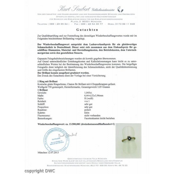 • Zertifikat: Die Angaben spiegeln unsere persönliche Meinung wieder, die wir uns nach bestem Wissen und Gewissen auf Basis langjähriger Erfahrung gebildet haben. Auf Wunsch erstellen wir Ihnen gerne einen Schmuckpass. Gutachten vom Industrie und Handelskammer sachbestellten und Gericht vereidigten Gutachter vorhanden.
