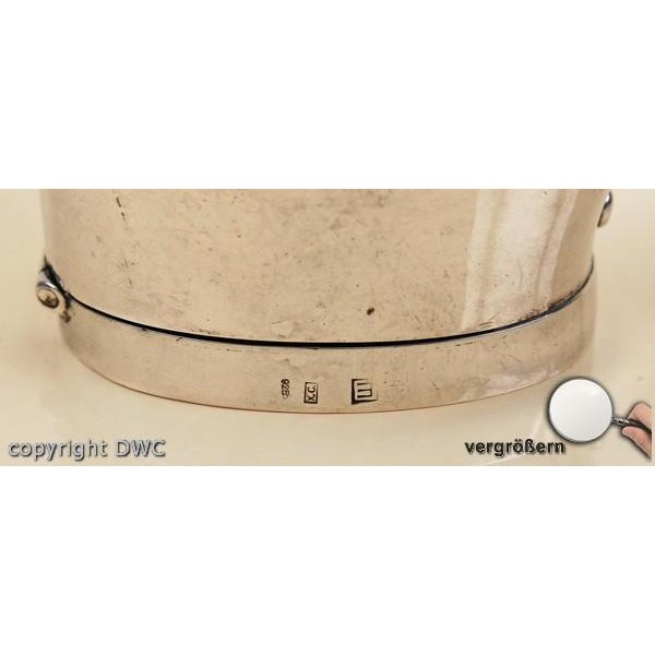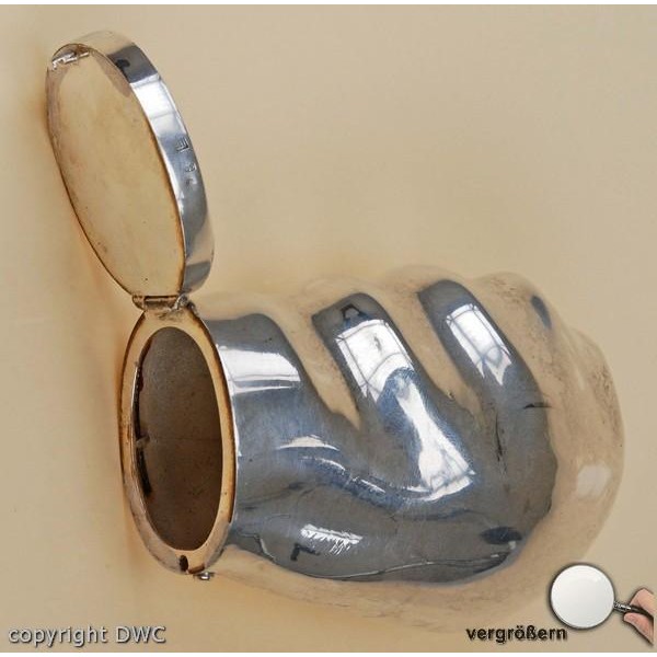 • Maße: LÄNGE: 9,5 CM, BREITE: 6 CM, KNAUF ZUM AUFKLAPPEN FÜR GETRÄNKE ODER HEISSES WASSER, SILBERSCHMIEDE ARBEIT, ELEGANTES DESIGN