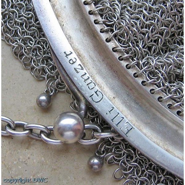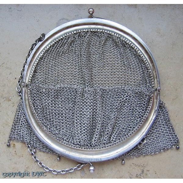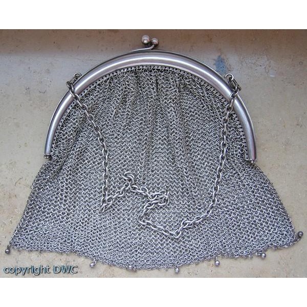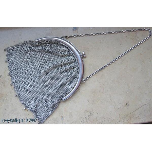 Abendtasche Tasche Opern Taschen in 800 er Silber Antik Kette Hand