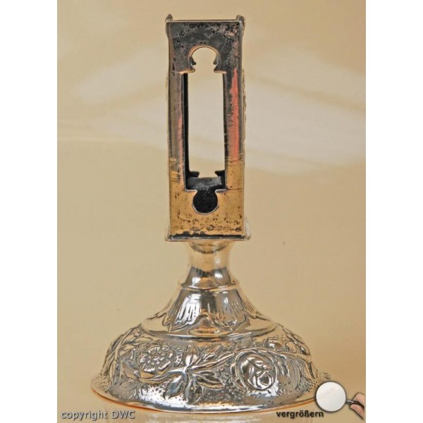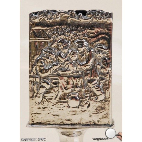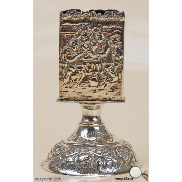 • Maße: HÖHE: 9,5 CM, BREITE: 4 CM, SOCKEL: DURCHMESSER 6,4 CM, RITTERLICHE MOTIVE SILBERSCHMIEDE HANDARBEIT AUFWENDIGES DESIGN MIT SOCKEL