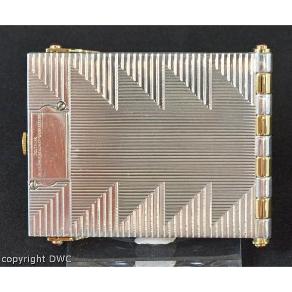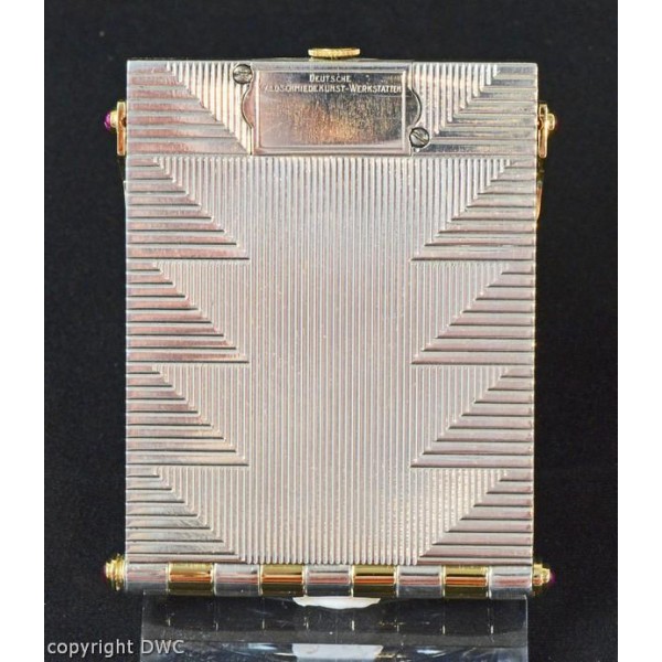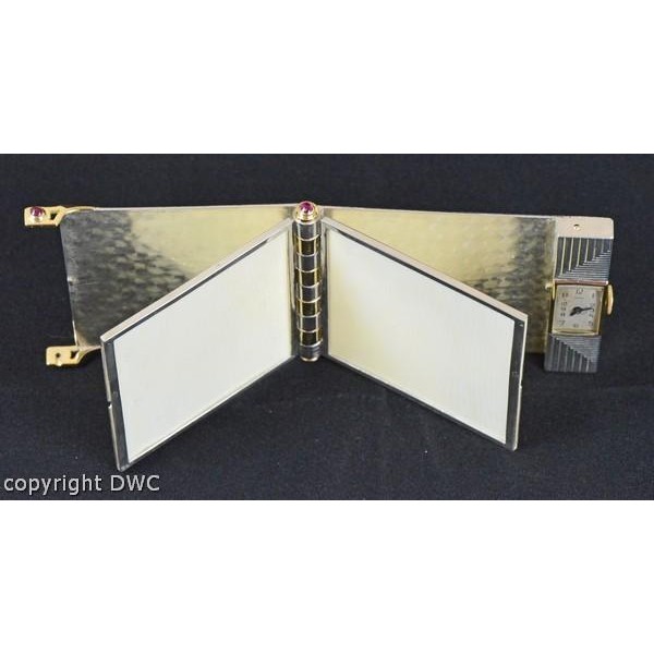 Silber Notizblock mit Uhr DGW Bein Art déco Unikat Gold 18 Kt. 750 Rubine.
