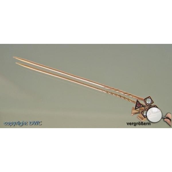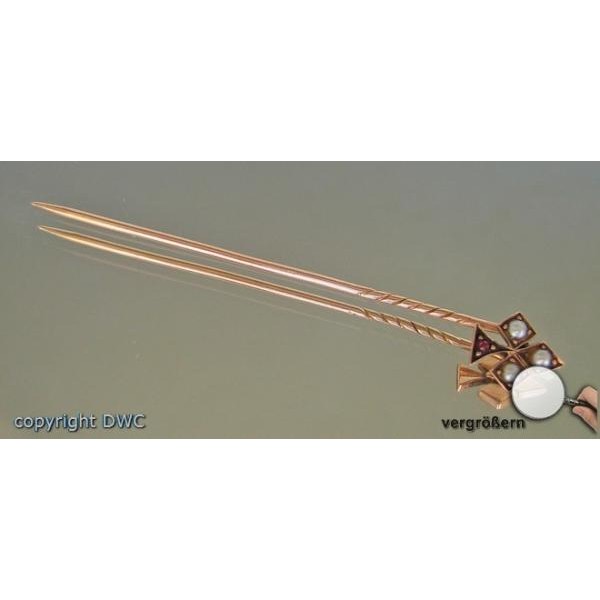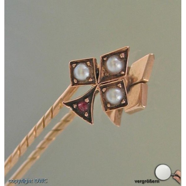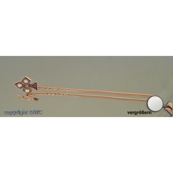 Anstecknadel 585 Goldnadel Brosche Perlen Granat Nadel fein