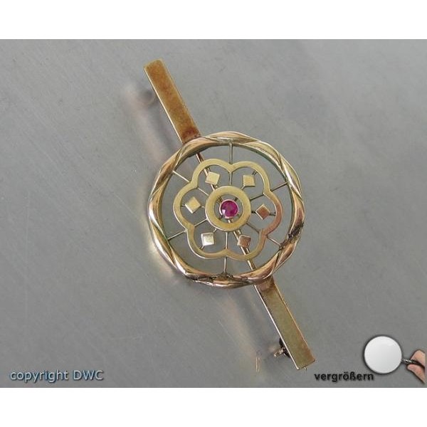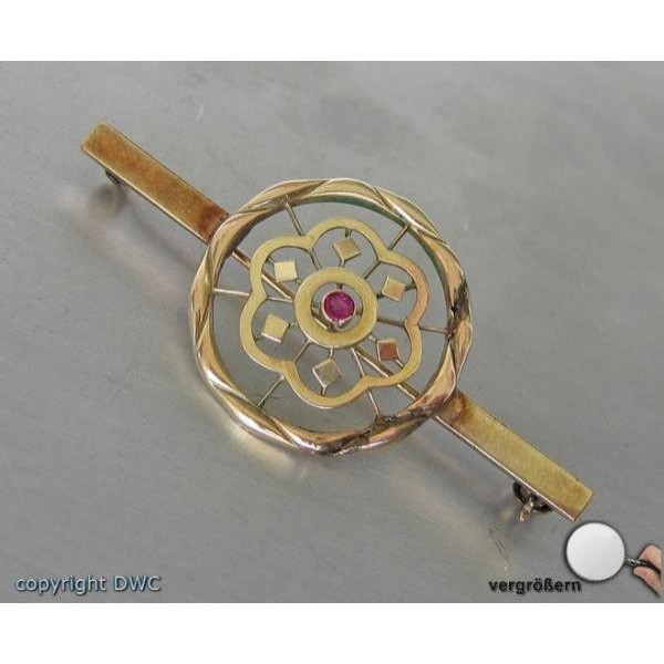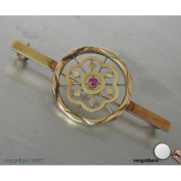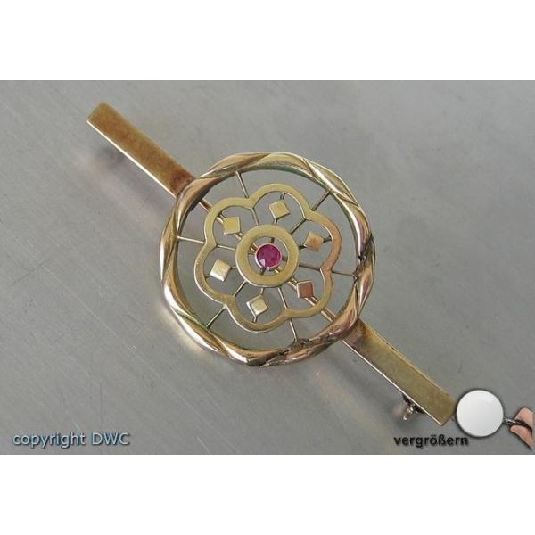 Nadel Brosche in 14 Kt 585 er Gold mit Rubin antik Rubine Sammlerstück